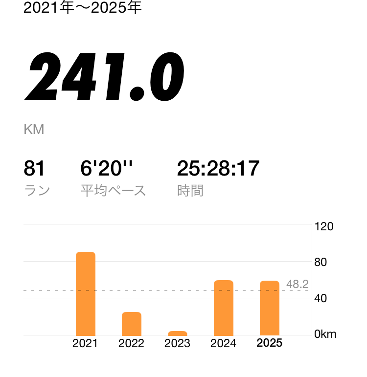 - 2025年:11月23日(日)現在21回走りました。累計58キロ程度でした。